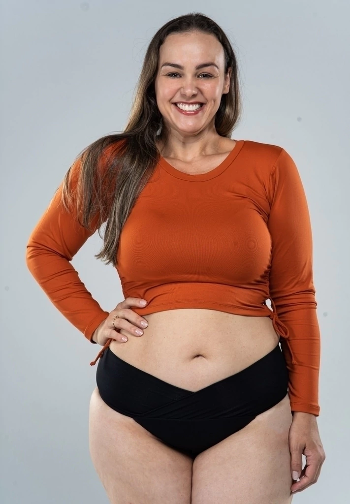 Una característica interesante de este crop top es el largo ajustable, que te permite ajustar la altura de la pieza según tus preferencias, haciéndolo más versátil y adecuado para diferentes tipos y estilos de cuerpo. Con mangas largas, este top corto es una excelente opción para los días más fríos o para quienes desean una cobertura adicional en sus brazos.