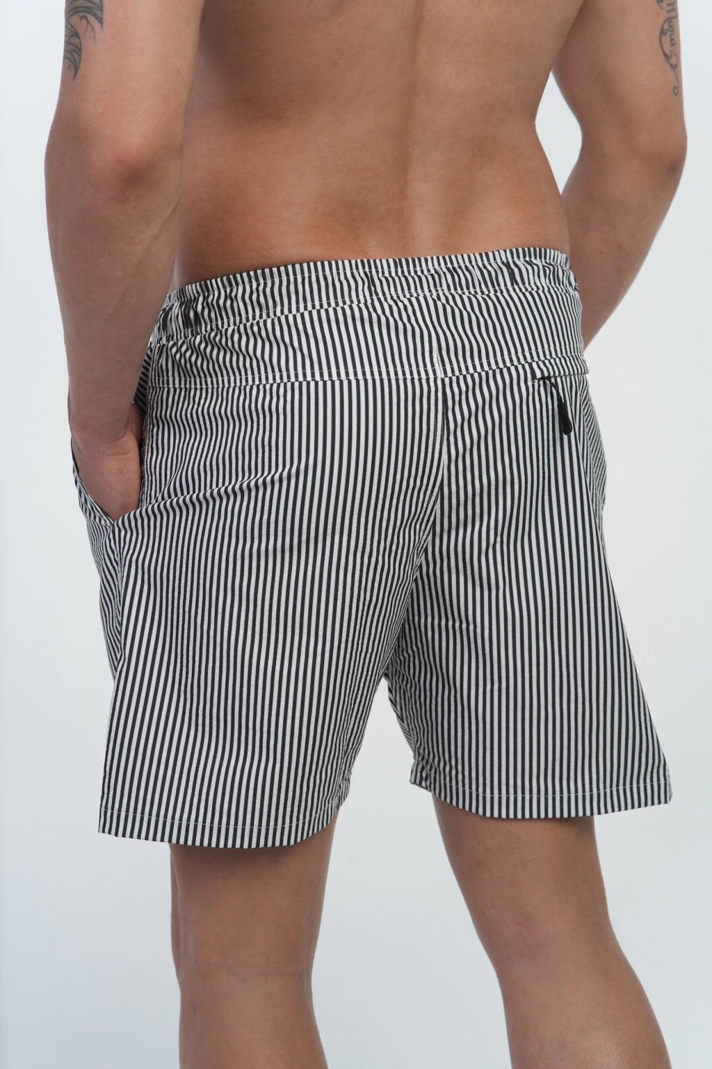 Shorts de Playa Masculino con Estampa de Rayas Negras – Comodidad y Estilo en Cada Onda