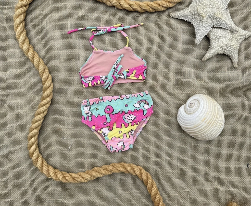 Deixe os dias de praia e piscina mais mágicos com este conjunto infantil encantador! O top e a calcinha apresentam uma estampa divertida de unicórnio, perfeita para meninas que amam cores, fantasia e diversão. O conjunto garante conforto, leveza e liberdade para brincar o dia todo. Ideal para proteger a pele delicada da criança enquanto mantém um estilo alegre e encantador.