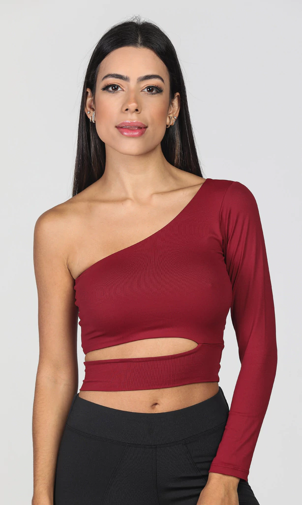 Cropped de um ombro só com parte da frente dupla, abertura lateral e um lado com manga 3/4 parece ser uma peça muito estilosa e moderna! O design de um ombro só adiciona um toque de sofisticação, enquanto a abertura lateral e a manga 3/4 trazem um elemento interessante e único ao visual.