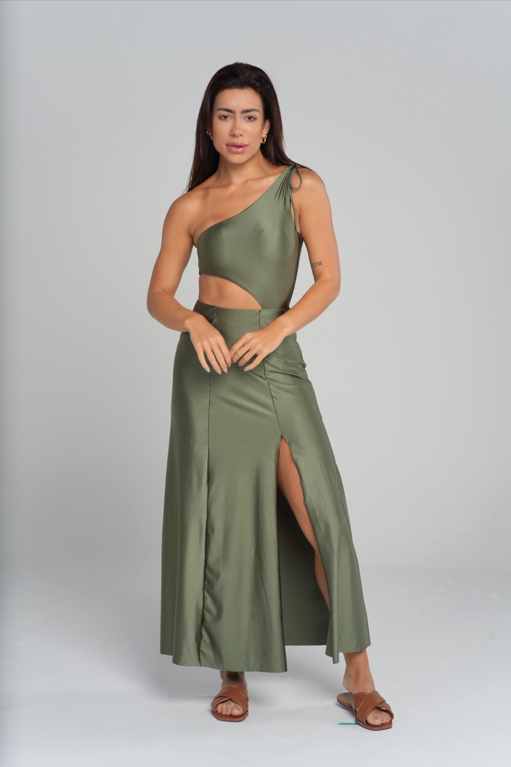 Esta saia longa é uma peça cheia de charme e versatilidade. Com uma fenda frontal que também pode ser usada na lateral, ela garante um movimento leve e um toque sensual. Seus recortes estratégicos valorizam as curvas, tornando-a uma peça sofisticada e elegante. Quando combinada com os outros itens da coleção, ela vai muito além de uma simples saída de praia, transformando-se em uma escolha perfeita para diversas ocasiões.