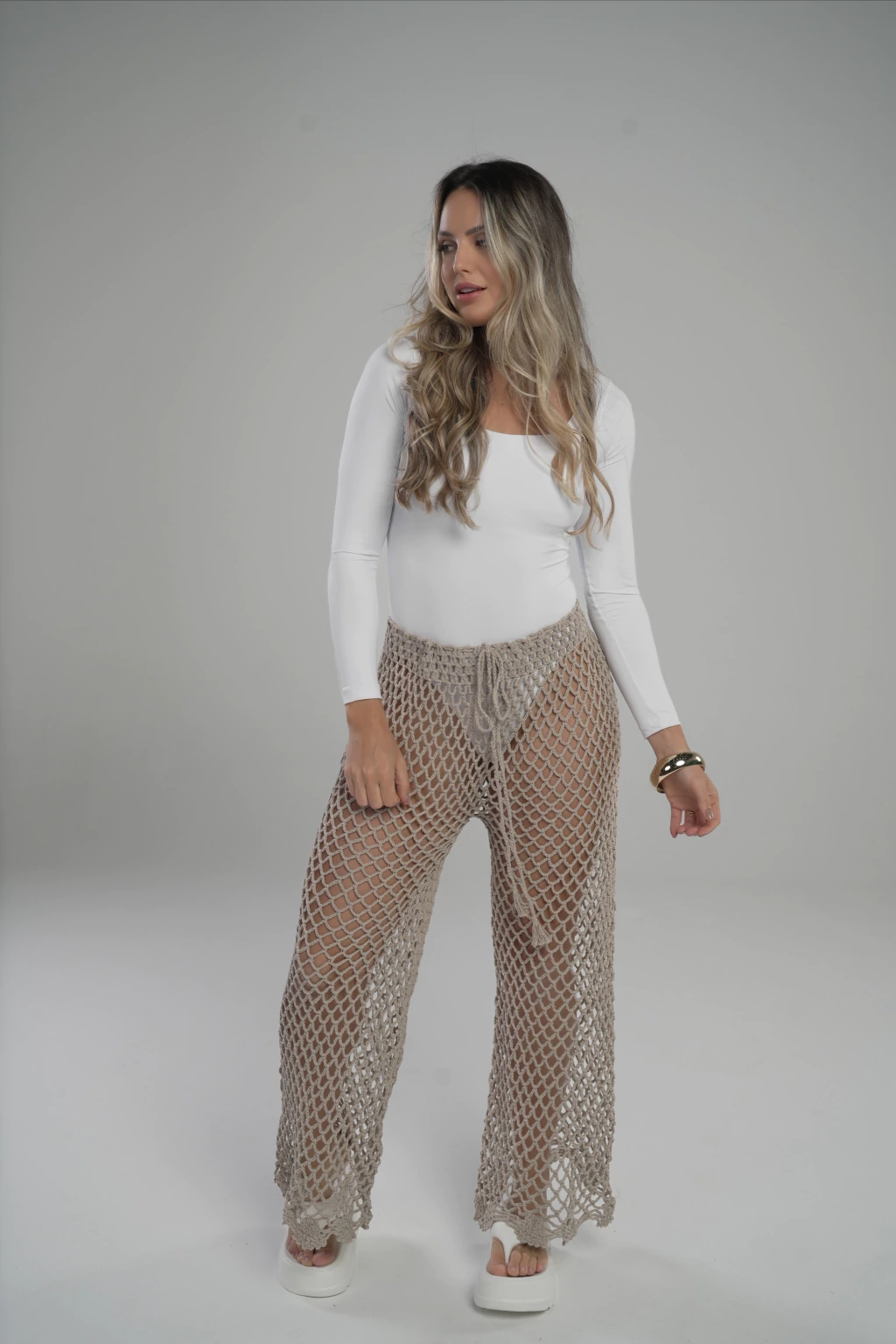 Elevate your summer wardrobe with the Calça De Crochê Avelã — where comfort meets handcrafted elegance.